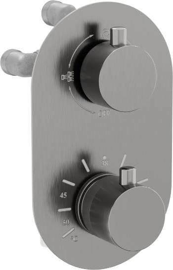 Technická data: Materiál: Tělo z mosazi Hlava: termostatická Připojení: 2x G 1/2 "vstup a 2x G 1/2" výstup Blokování horké vody při 38 ° C Sada: zapuštěná a přisazená část Barva: grafit EAN: 5907709119024